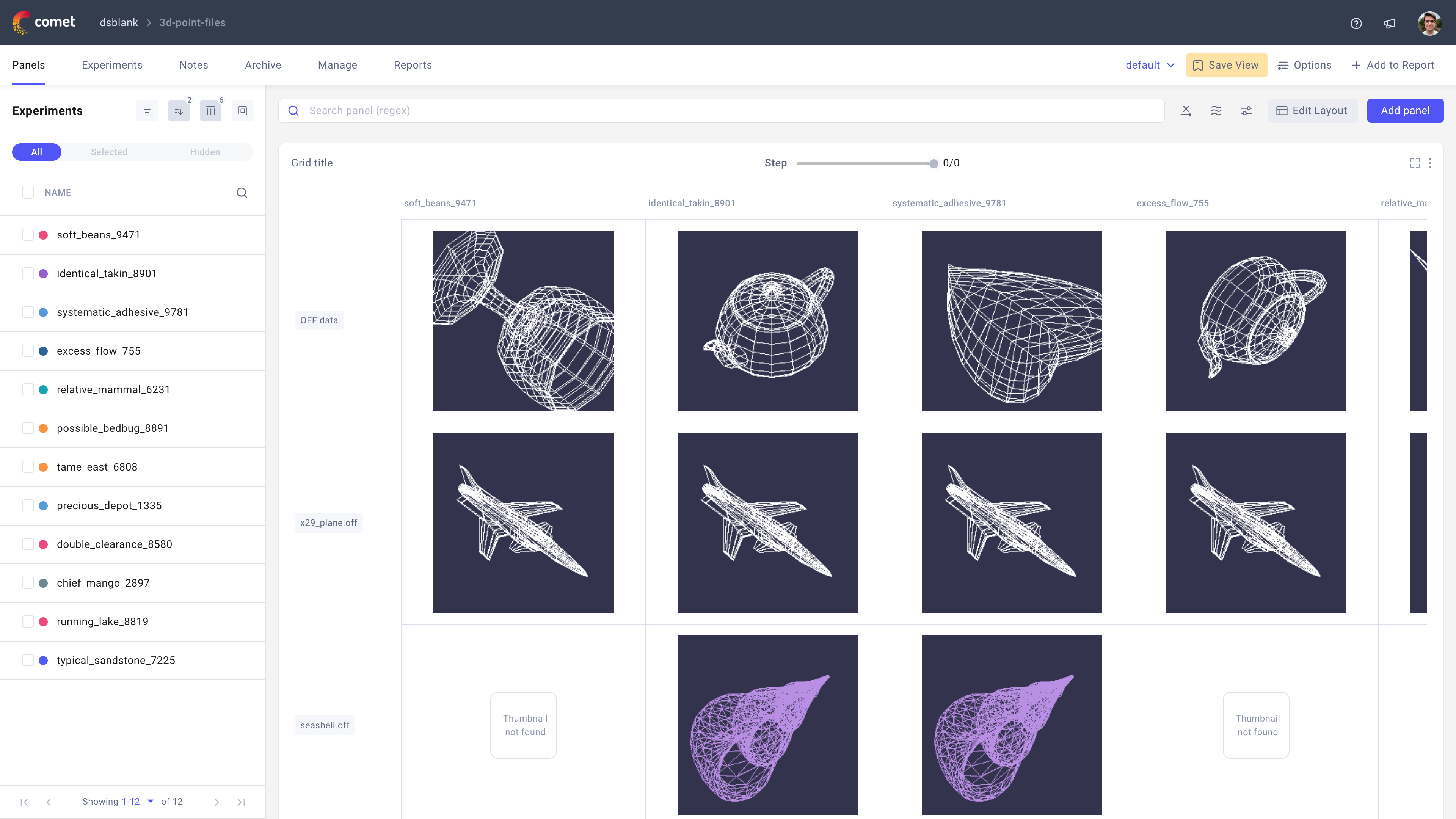 Note that some 3d assets may be logged in some steps but not others - in those cases, the panel will not display a 3d asset since none was logged.Number of experiments to show: Configure how many experiments to track.
